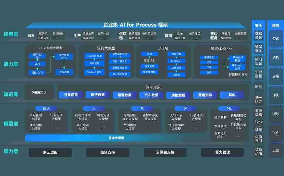 端到端的一站式AI工作空间深度融合了从企业战略规划到日常经营的全流程业务板块,,,,定向解决车企内部领域多、、、部门多、、、链条长、、、、场景碎片化等难题,,,支持车企快速构建以AI为核心的生产力写作体系,,实现任务执行与AI能力的无缝集成与交互